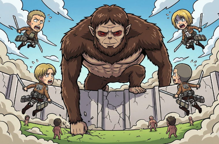 壁の上に出現する獣の巨人